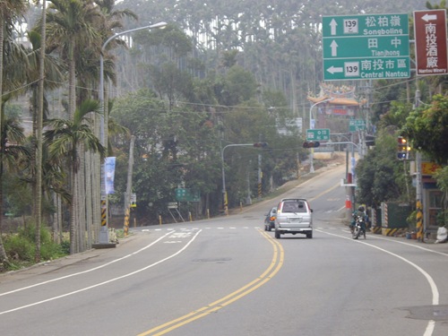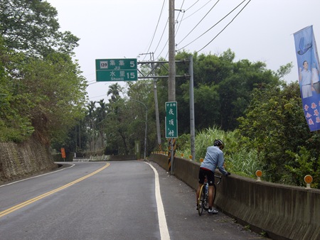 又哈拉了一下,兩人繼續出發,看著集集還有五公里的路標,心裡知道我們就要騎完了,反正等下可以休息,前面又一台烏賊車,超過去吧! 心理這麼想著,在溜下坡時,突然想到gland好像不見了,於是慢慢溜等他跟上,這時後借我公路車的叔叔剛好打電話來,約我晚上去他家聊天,順便要帶我去逛車店,講到一半gland就跟上來了,繼續往前,終於看到139終點的路標,拍張照(我已經閃很旁邊了還一直拍我= ="),往前左轉就到