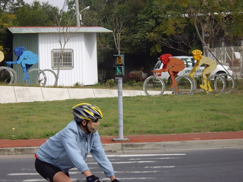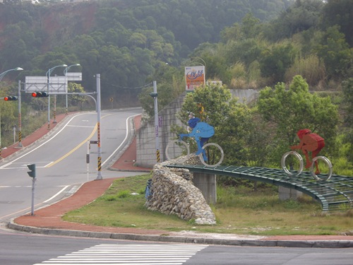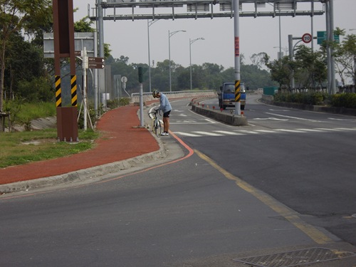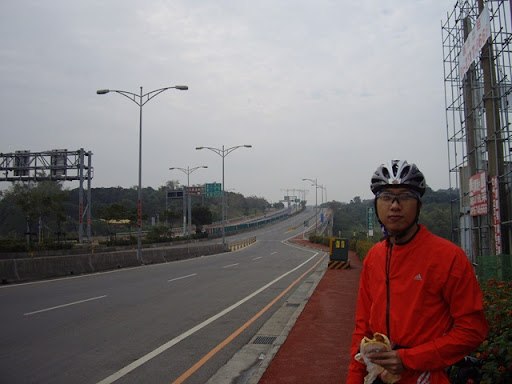 幾分鐘之後之後繼續上路,一出去就被提早一個紅綠燈出發的阿伯超越(超強),阿伯經過我身邊時我還"挖~"了一聲,然後阿伯一路跟在GLAND後面,跟了應該有兩公里吧,我則是在後面默默的觀察GLAND何時會發現後面跟了一個阿伯,阿伯騎著登山車,踩的很賣力,拼命的想跟著GLAND,無奈到了平路,公路車就發揮優勢,兩人揚長而去,阿伯再見~~