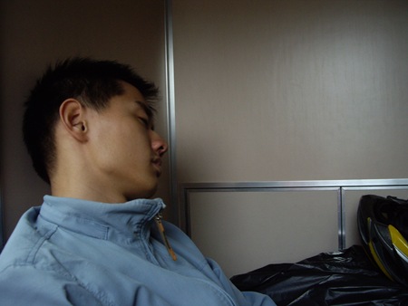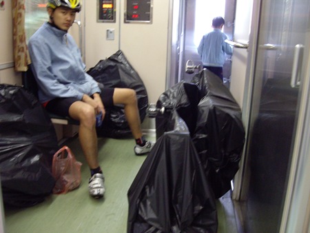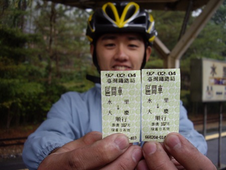 跟阿桑道謝後,走回車站,把車架跟輪組搬去洗手台,開始擦車,快擦完的時後,往車埕的火車已經來了,反正來不及,慢慢擦吧! 兩人擦完後將輪組車架裝垃圾袋,突然發覺到gland的細心,讓我有種說不出的感動,果然有大哥哥的架勢,走過鐵軌,到了月台,上了火車,找個位置坐後我很快的就睡着了