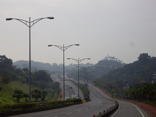 2/4那天睡到八點自然醒來,打給GLAND Morning Call,聽他聲音我就知道九點他不可能到東外環入口惹,果然之後他自爆睡到8點20分,40分才出門,我到東外環(台74甲)了他才到烏日消防隊,我則是八點起床後東摸摸西摸摸,出去買個早餐,看個電視,找女車神MSN(真早起床),ㄧ直混到接近九點才出門,一路慢慢騎,到東外環接到他的電話叫我幫他買早餐,所以又繞回去我的母校外面早餐店買早餐,順便聊天,然後又回到了東外環,車停好就看到GLAND已經在對面的中彰出口(台74中彰快速道路),然後看著他左顧右盼,還打手機給我,我ㄧ直沒接,等他發現我已經在對面,紅燈還很久,他拿了相機拍了一張等下要爬的坡,看起來還蠻恐怖的,不過跟八卦山牌樓左邊進去那個坡比起來...這個只是小菜而已