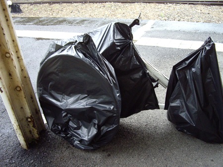 兩人就並排的到了水里車站,買了車票後,gland就消失了,原來是去買垃圾袋,我則是把車子拆完後,在車站晃來晃去等他回來,之後,gland說還很久,乾脆擦一下車子,我就說:那我去買抹布吧!